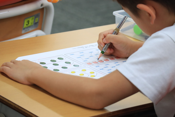 数量・図形・推理&思考・言語・常識・記憶の分野を中心に、段階を踏んで繰り返し学びます。どのように処理するのか、なぜそのように考えるのかが、自然と理解できるように、具体物なども使いながら時間をかけてじっくり学びます。